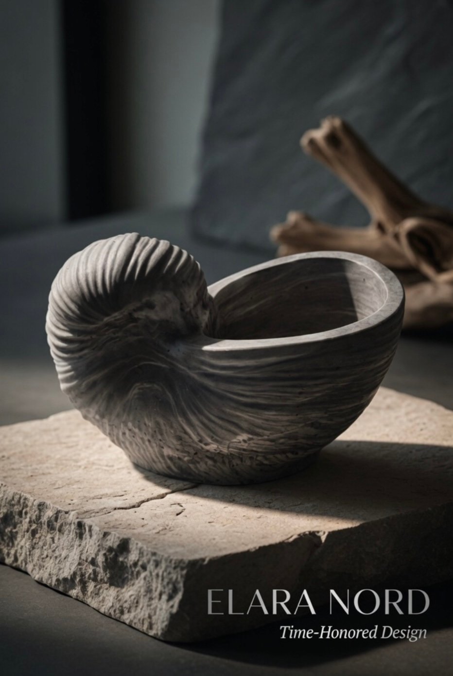 NORD SHELL on veistoksellinen design-esine, jossa yhdistyvät orgaaninen linjakkuus ja skandinaavinen minimalismi.